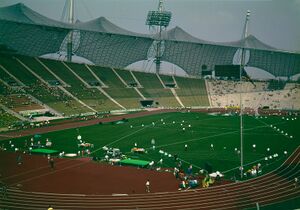 Luftbild des Olympiageländes kurz vor der Fertigstellung im Frühjahr ...