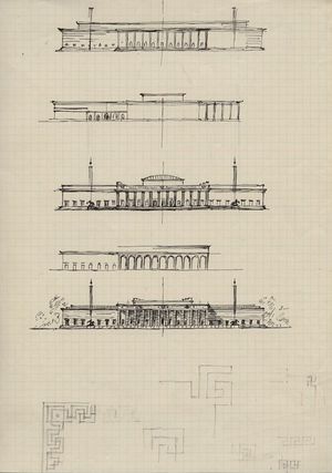 Ansicht des Verkehrsministeriums in München, Arnulfstraße 11. Kupfertiefdruck, 1925. ...