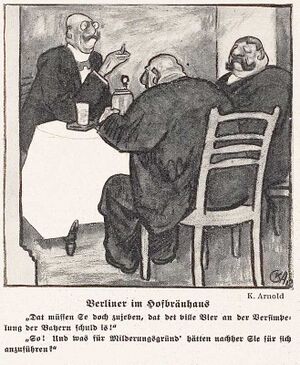 Karikartur "Berliner im Hofbräuhaus", von Karl Arnold (1883-1953), 1913 ...