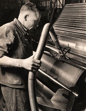 Werkraum der Graslitzer Musikinstrumentenbauer in Waldkraiburg. (Foto aus: Lindner, ...