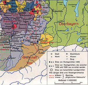 Bayern um 1450. (Gestaltung: Stefan Schnupp; Vorlage: Spindler u. ...