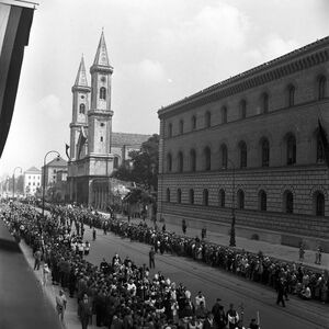 Menschenansammlung vor dem Bürgerbräukeller in München anlässlich der Wiederbegründung ...