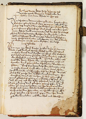 - Werner Mezger, Sankt Nikolaus. Zwischen Kult und Klamauk. Zur Entstehung, Entwicklung und Veränderung der Brauchformen um einen populären Heiligen, Ostfildern 1993, 110-119, 126-128.