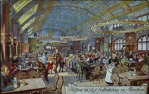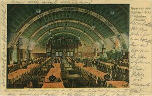 Festsaal des Münchner Hofbräuhauses, Postkarte, 1915. (Haus der Bayerischen Geschichte, bapo-14932)