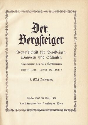 Vor allem aber legte Alfred Bruckmann sein Augenmerk auf die Reise- und Bergliteratur. 1927 wurde eine eigene "Abteilung für Alpine Literatur" im Bruckmann Verlag eingerichtet. In den Folgejahren kam es zu einer engen Zusammenarbeit mit dem Deutschen und dem Österreichischen Alpenverein. Seit 1930 erscheint bei Bruckmann außerdem die bis heute bestehende Zeitschrift "Der Bergsteiger", die 1934 amtliches Organ des "Fachamtes Bergsteigen im Deutschen Reichsbund für Leibesübungen" wurde.