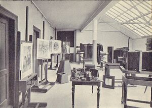 Ein Fotoatelier im 1898 neu bezogenen Verlagshaus an der Nymphenburger Straße. Abb. aus: Friedrich Bruckmann, Eine moderne Werkstätte für Buchgewerbe und graphische Reproduktion, München 1900, 9. (Bayerische Staatsbibliothek, Bavar. 490 nd)