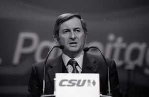 Der Machtkampf um die Nachfolge von Strauß resultierte zunächst in einer Teilung der beiden für die CSU wichtigsten Ämter. Der bayerische Finanzminister Max Streibl (1932 – 1998, bayer. Ministerpräsident 1988-1993) wurde Ministerpräsident, Theo Waigel (geb. 1939), bis dahin Vorsitzender der Landesgruppe im Bundestag, Parteichef. Der Führungswechsel fiel in eine Phase, in der die Republikaner zu einer konkreten Bedrohung für die absolute Mehrheit der CSU heranwuchsen. Wie einst im Umgang mit der BP gab es in der Partei auch nun Stimmen, die eine Annäherung bevorzugten. Es setzten sich indes die Befürworter einer harten Bekämpfung durch, Strauß‘ Diktum folgend, dass es rechts von der CSU keine demokratisch legitimierte Partei geben dürfe. 1990 verpassten die Republikaner auch deshalb den Einzug in den Landtag.