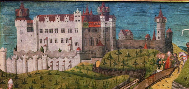 Ansicht der Festung Marienberg in einem Gemälde vom Martyrium des Hl. Kilian und seiner Gefährten. Hersteller: Nürnberger Meister um 1475. Standort: Fotoarchiv Museum für Franken, Foto: H. J. Wiehr. (Leihgabe der Stadt Würzburg im Museum für Franken - Staatliches Museum für Kunst- und Kulturgeschichte in Würzburg, 43883 [Ausschnitt]) HLB