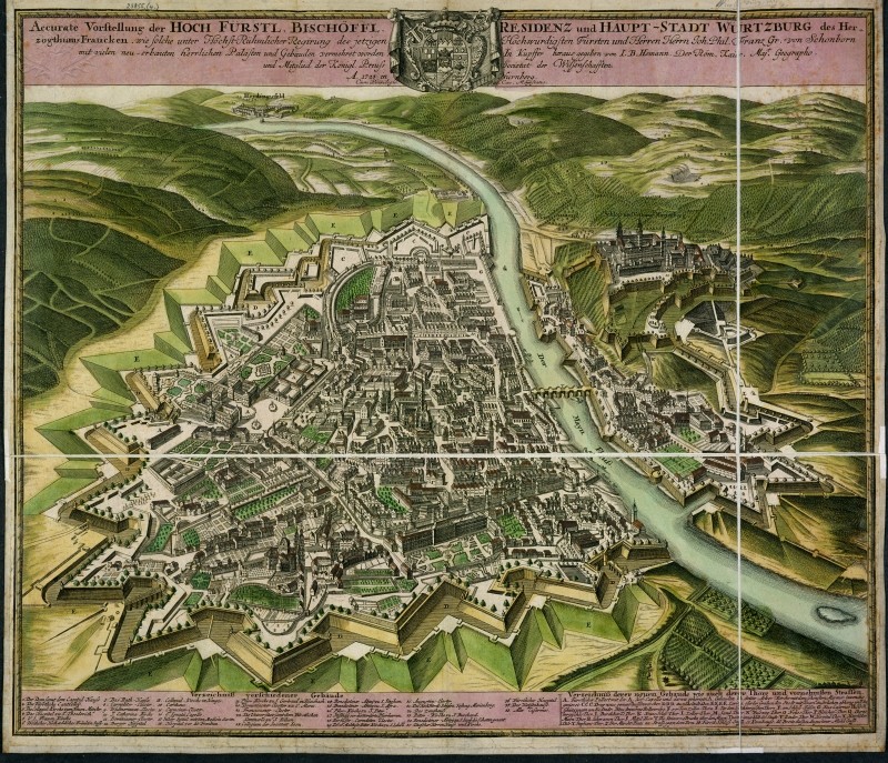 Die Stadt Würzburg mit der Festung Marienberg 1723. Erstellt von Johann Baptist Homann (20.3.1664-1.7.1724). (British Library / Universal Images Group via Britannica ImageQuest) HLB