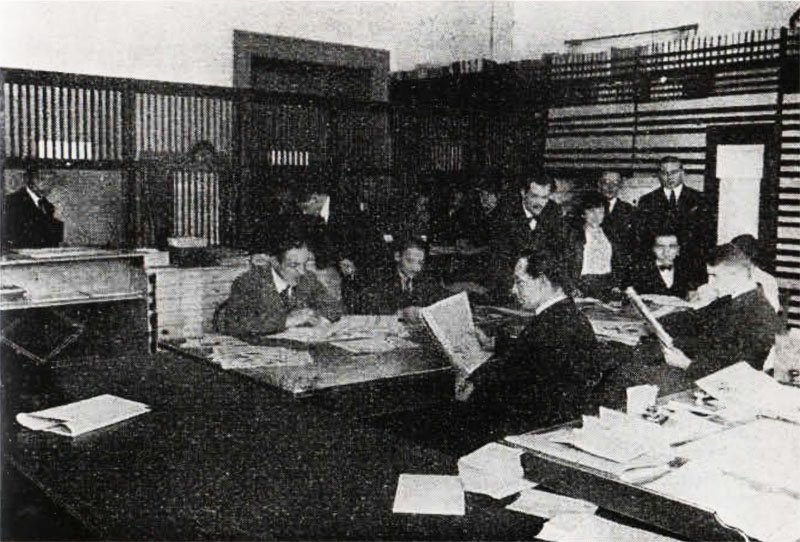 Das Büro des AStA der Universität München in den 1920er Jahren. Abb. aus: Laetitia Boehm und Johannes Spörl: Ludwig-Maximilians-Universität. Ingolstadt-Landshut-München 1472-1972, Berlin 1972, 329. (Mit Genehmigung des Universitätsarchives der Ludwig-Maximilians Universität München)