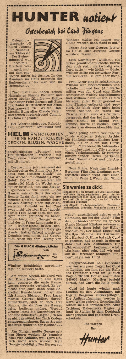 AZ-Kolumne, Hunter notiert, 8. April 1958. (Monacensia. Literaturarchiv und Bibliothek)