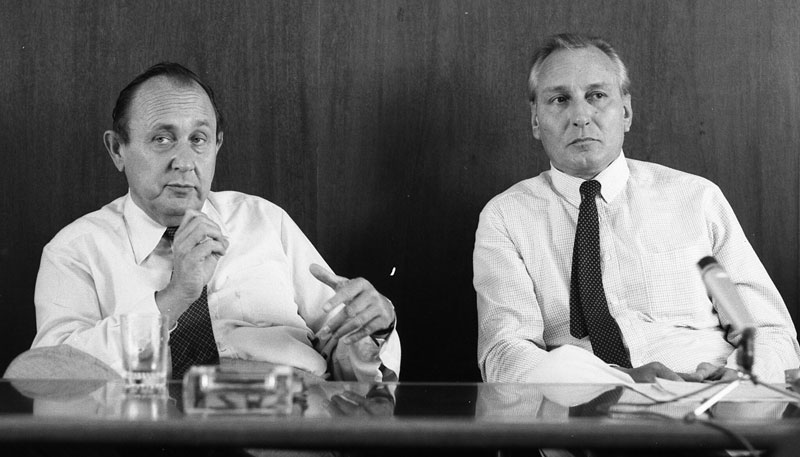 25 Jahre lang Chefredakteur der AZ: Udo Flade mit dem damaligen Außenminister Hans-Dietrich Genscher. (Fotografie von Guido Krzikowski, mit freundlicher Genehmigung von Peter Ehm)