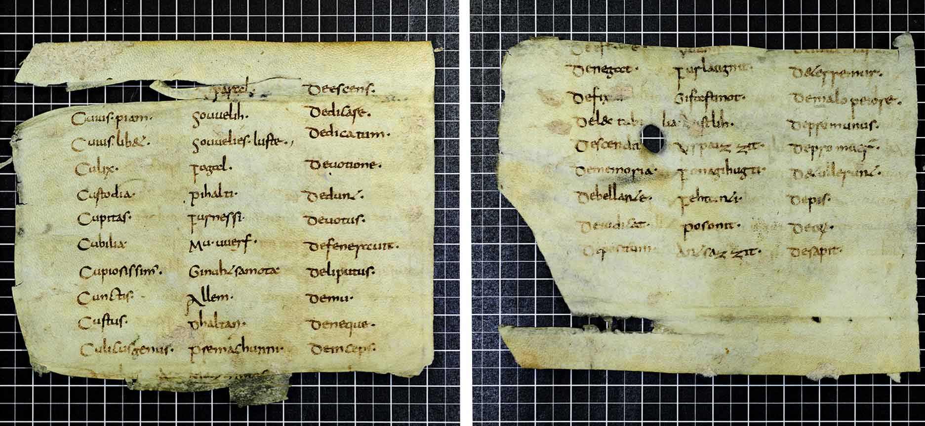 Abrogans Ad, alemannische Minuskel, frühes 9. Jahrhundert. (Admont, Stiftsbibliothek, Fragm. D1) HLB