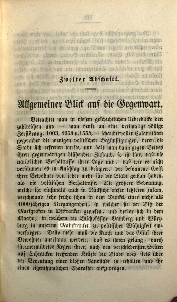 Auszug aus der Einführung eines Adressbuchs der Stadt Schweinfurt von Heinrich Christian Beck (1805-1866) von 1846 mit der Verwendung des Wortes "Mainfranken" (im Text hervorgehoben). München, Bayerische Staatsbibliothek -- Bavar. 211 m) HLB