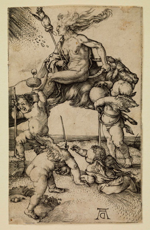 Die Hexe, Kupferstich von Albrecht Dürer (1471-1528), c. 1500. (Staatsbibliothek Bamberg, I D 12, Foto: Gerald Raab, lizenziert durch CC BY-SA 4.0) HLB