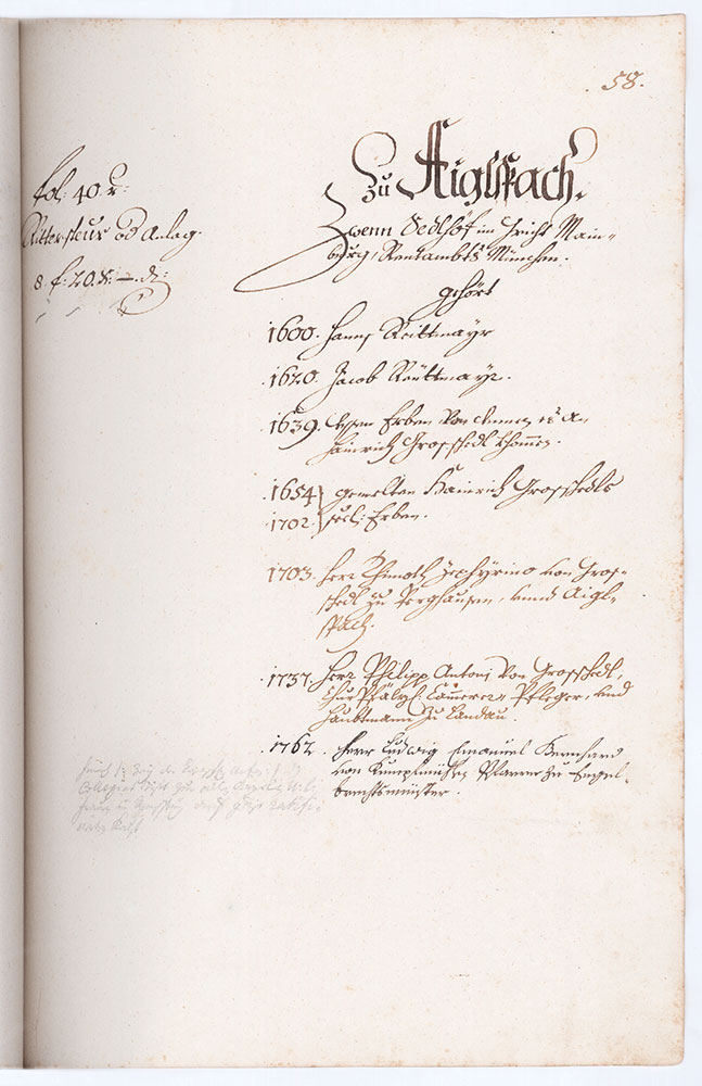 Landtafel von 1736, Band 1 - Beispielseite von Gut Aiglsbach. (BayHStA, Altbayerische Landschaft Literalien 132)