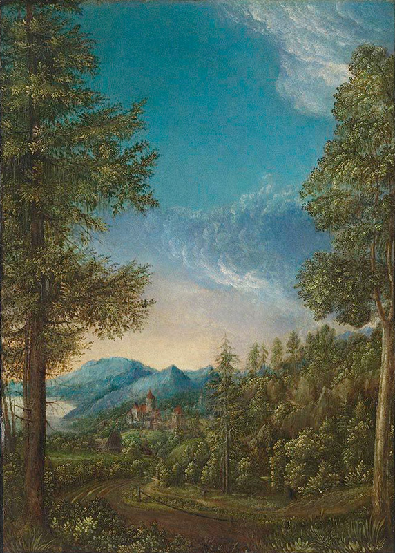 Donaulandschaft mit Schloss Wörth, Gemälde von Albrecht Altdorfer (um 1480-1538), um 1520/25. (Bayerische Staatsgemäldesammlungen - Alte Pinakothek München Inv. WAF 30 lizensisert durch CC BY-SA 4.0)
