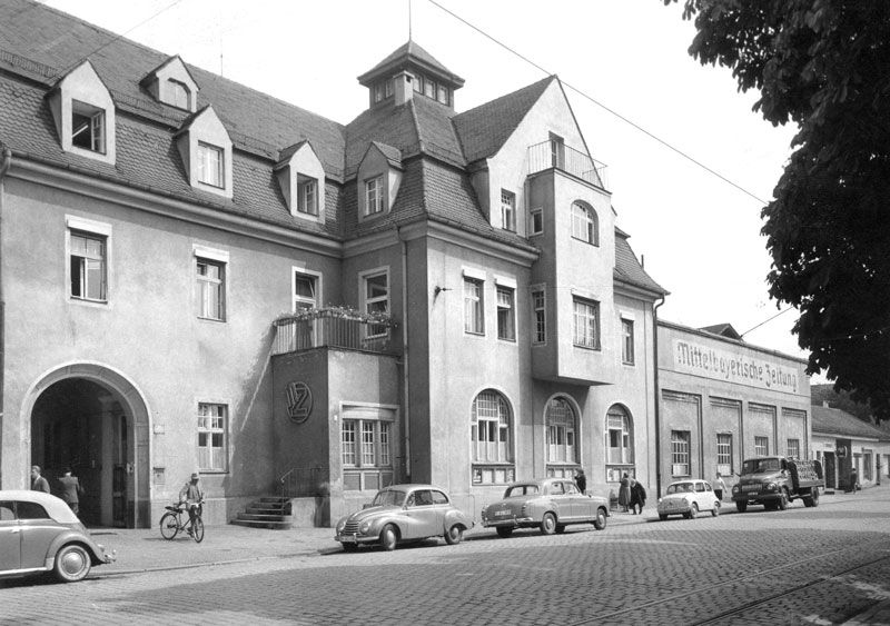 Foto des ehemaligen Verlagsgebäudes der Mittelbayerischen Zeitung in der Kumpfmühlerstraße in Regensburg aus Jahr 1958. (Foto: Berger; Bildrechte: Peter Esser) HLB