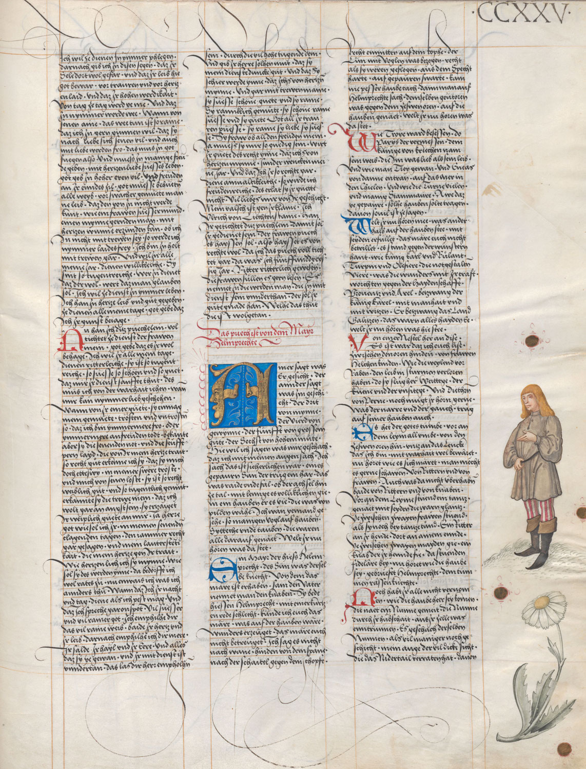 Beginn der Erzählung "Helmbrecht" von Wernher dem Gärtner im Ambraser Heldenbuch. Die Handschrift entstand von 1504 bis 1516. (Österreichische Nationalbibliothek)