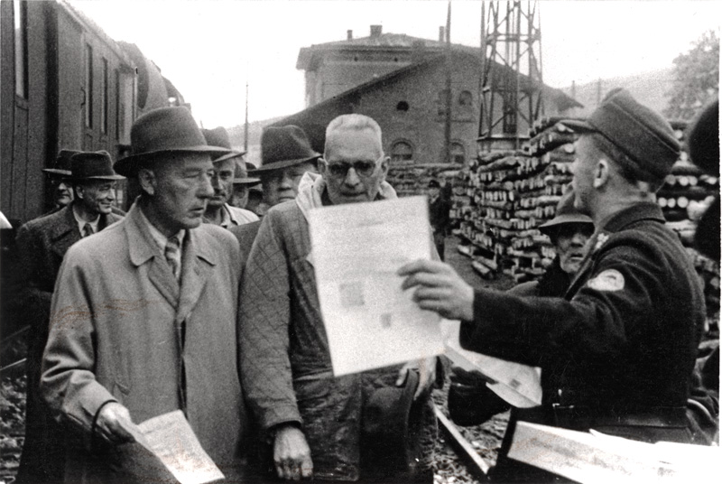 Ankommende Flüchtlinge am Bahnhof Furth im Wald, 1946. (Sudetendeutsches Archiv, Bildersammlung 21390, mit Genehmigung des Stadtarchives Furth im Wald) HLB