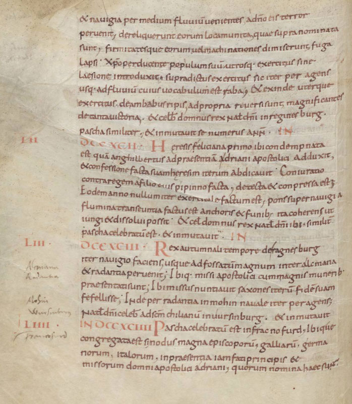 Annales regni Francorum zum Jahr 793 in einer Wiener Handschrift des 9. Jahrhunderts (Österreichische Nationalbibliothek, Cod. 473, fol. 130v)