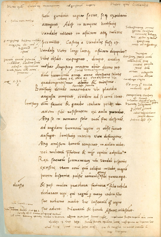 Anmerkungen und Zusätze Aventinus' in der Handschrift des zweiten Buchs der Annales ducum Boiariae, 4v. (Bayerische Staatsbilbiothek, BSB Clm 283)