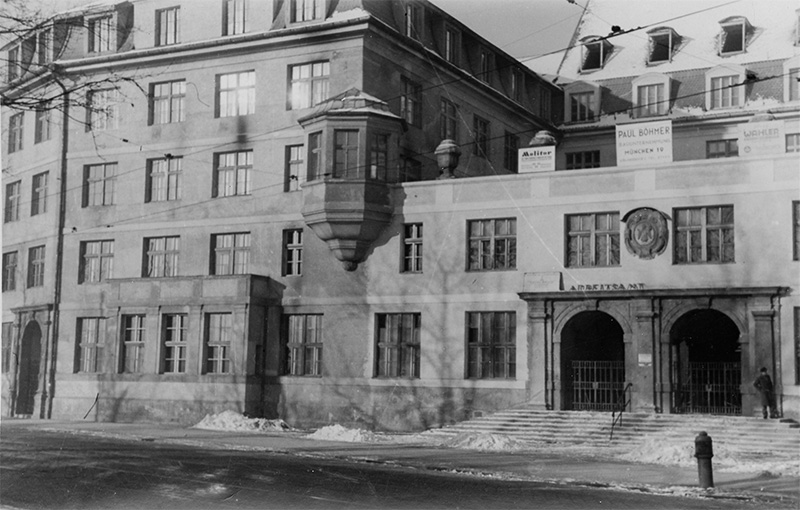 Das Münchner Arbeitsamt befand in den von Hans Grässel 1912/13 errichteten städtischen Verwaltungsgebäuden in der Thalkirchner Straße. (Bayerische Staatsbibliothek, Bildarchiv hoff-65168)