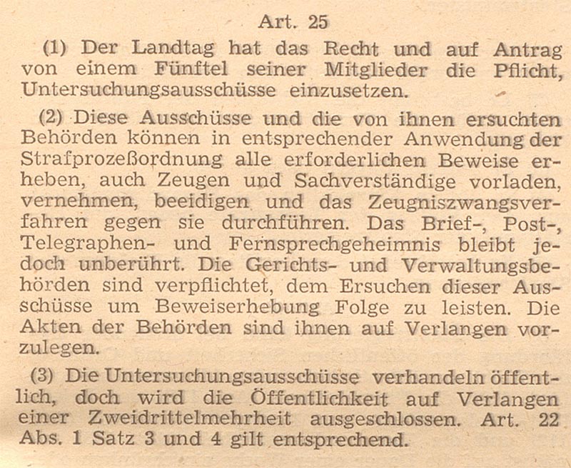 Artikel 25 der Bayerischen Verfassung von 1946 (Veröffentlichung der Bayerischen Verfassung von 1946 im Bayerischen Gesetz- und Verordnungsblatt, Nr. 23 (8.12.1946), S. 335