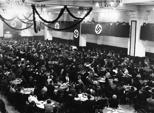 Veranstaltung der NSDAP am 3 März 1934, Blick in den vollbesetzten Saal [Bayerische Staatsbibliothek, FotoarchivHoffmann]
