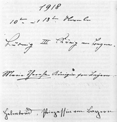 Die Eintragung der bayerischen Königsfamilie im Gästebuch von Schloss Anif zum 10-13 November 1918, König Ludwig III, Königin Marie Therese und Prinzessin Helmtrud [Foto OAnrather]