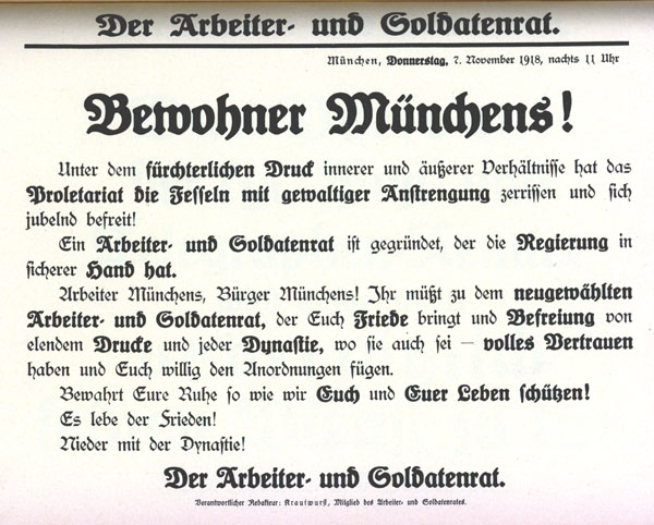 Bekanntgabe der Gründung des Arbeiter- und Soldatenrates. (Monacensia. Literaturarchiv und Bibliothek)
