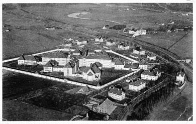 Luftaufnahme der Haftanstalt Landsberg, nicht datiert. Ein Teil des Gefängnisses diente seit 1920 als Festungshaftanstalt. (Bayerische Staatsbibliothek, Bildarchiv hoff-6651)