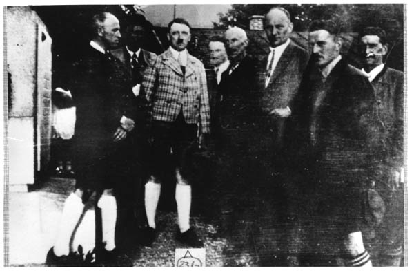 Adolf Hitler besucht das Oberland-Denkmal im Juli 1927. (Bayerische Staatsbibliothek, Bildarchiv, hoff-6782)