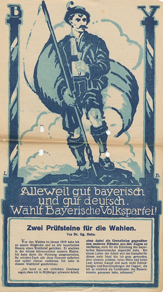 Wahlaufruf von Georg Heim an die bayerische Landbevölkerung, 17. März 1920. (Archiv für Christlich-Soziale Politik, München)