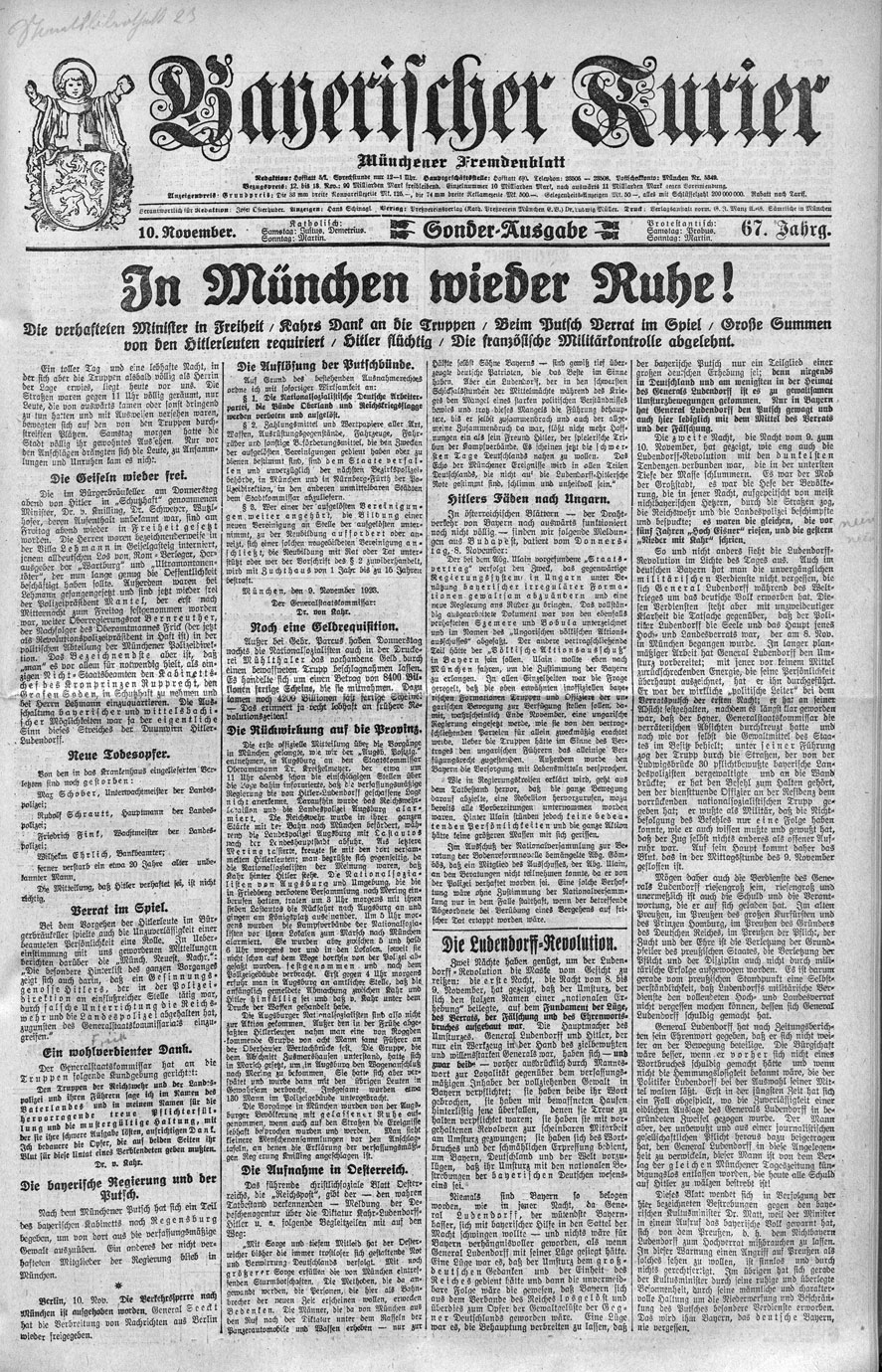 Sonderausgabe des "Bayerischen Kuriers" nach dem Hitlerputsch, 10. November 1923, Titelblatt.