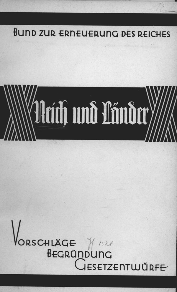Titelblatt der Broschüre des Bundes zur Erneuerung des Reiches, veröffentlicht vor der Länderkonferenz1928