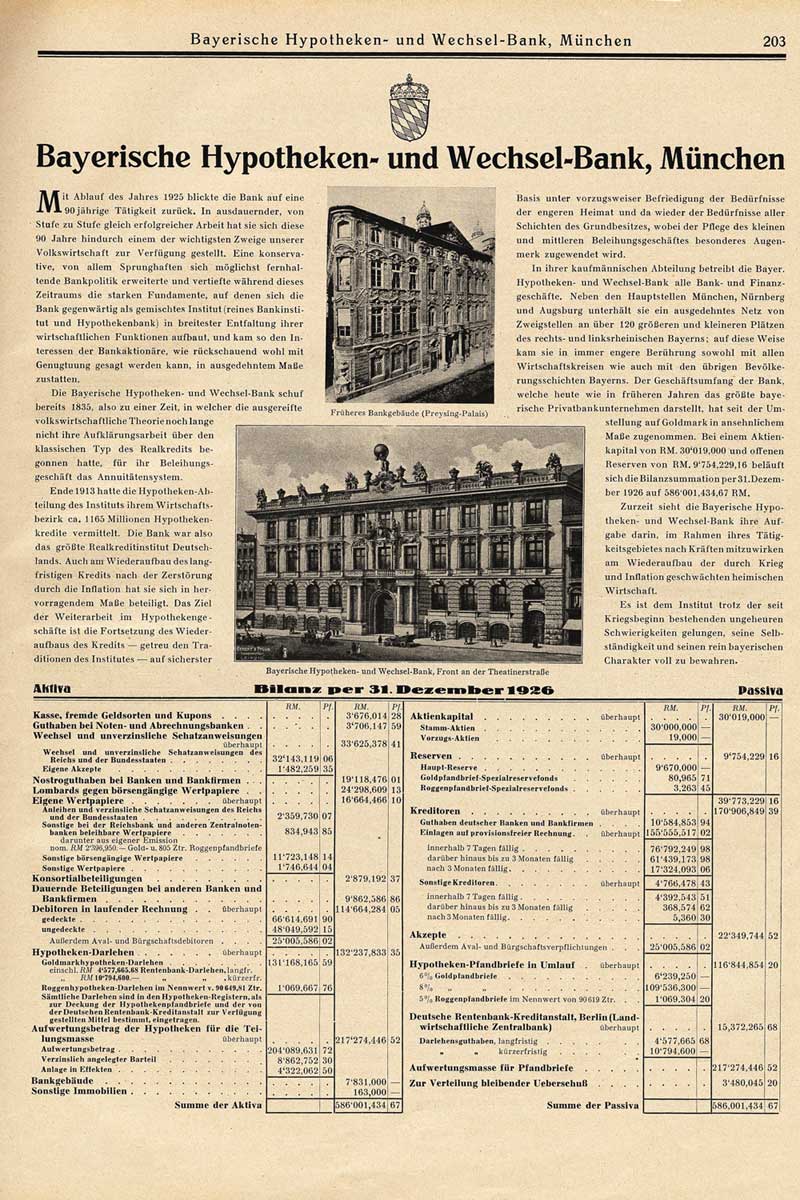 Bayerische Hypotheken- und Wechsel-Bank, München [aus: Das Land Bayern Seine kulturelle und wirtschaftliche Bedeutung für das Reich, München 1927, S203]