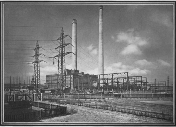 Bayernwerk-Dampfkraftwerk Schwandorf. Das 1930 in Betrieb genommene Werk wurde aus der Braunkohlengrube Wackersdorf versorgt. Abb. aus: Das Bayernwerk und seine Kraftquellen, München 1930, 34. (Bayerische Staatsbibliothek, Bavar. 4530 v)