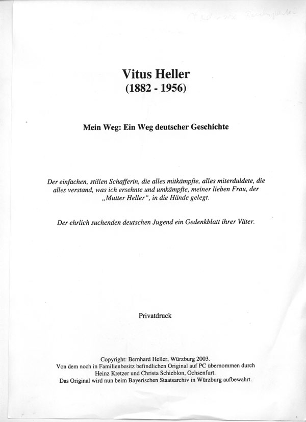 Deckblatt der Lebenserinnerung von Vitus Heller [StaatsarchivWürzburg]