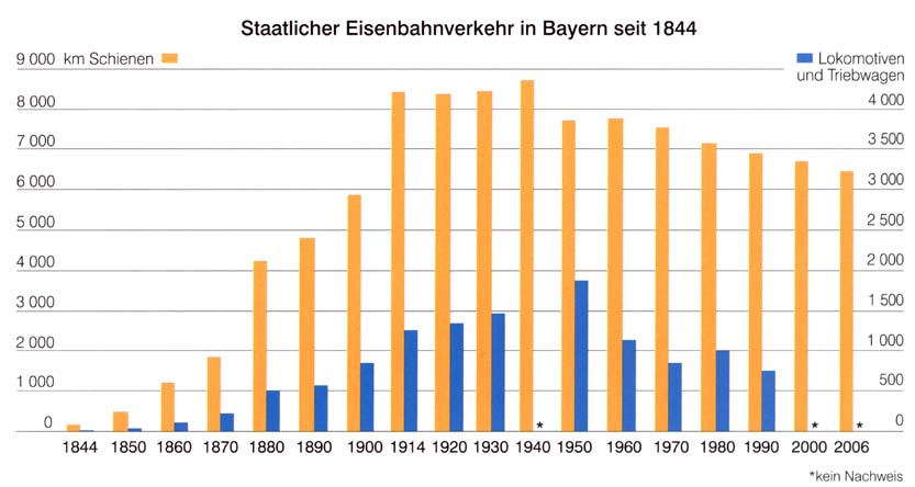 Staatlicher Eisenbahnverkehr in Bayern seit 1844. (© Bayerisches Landesamt für Statistik und Datenverarbeitung, München, 2008)