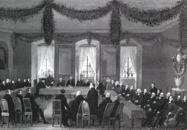Unionssynode in Kaiserslautern 1818. Gemälde von 1824 an der Emporenbrüstung der Dreifaltigkeitskirche in Speyer. (Bauabteilung des Landeskirchenrats der Evangelischen Kirche der Pfalz)