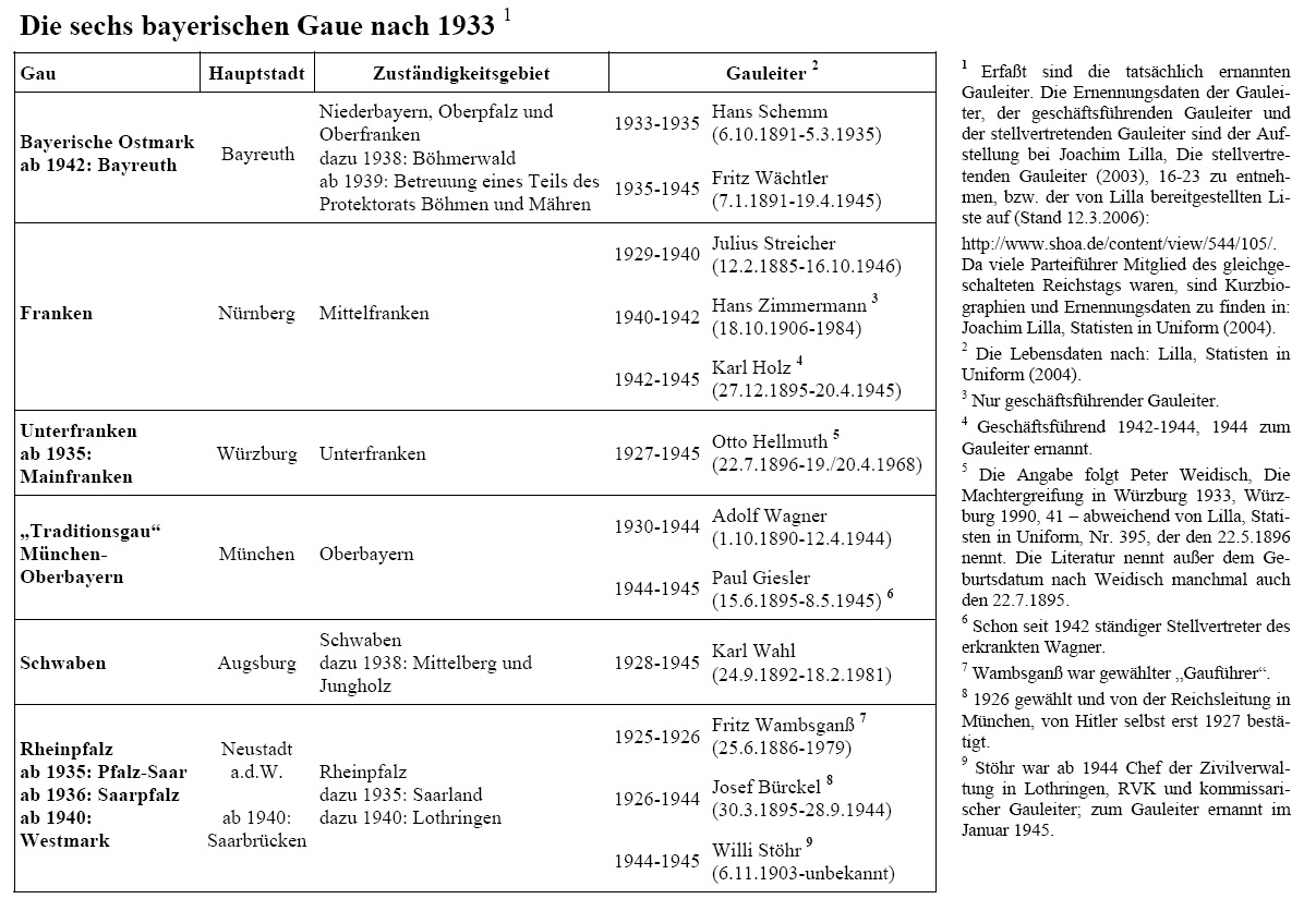 Übersicht über die sechs bayerischen Gaue, 1933 [JürgenFinger]