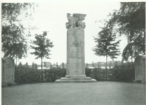 Kriegerdenkmal auf dem Neuen Friedhof der israelitischen Kultusgemeinde Nürnberg, Entwurf von Fritz Landauer (1883-1968). (aus: A. Eckstein-Bamberg, Haben die Juden in Bayern ein Heimatrecht? Eine geschichtswissenschaftliche Untersuchung mit kriegsstatistischen Beilagen, Berlin 1928, nach 80)