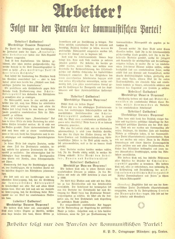 Flugblatt der KPD, April 1919 während der Räterepublik. (Monacensia. Literaturarchiv und Bibliothek)