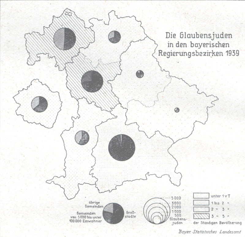 "Glaubensjuden" in den bayerischen Regierungsbezirken 1939. (© Bayerisches Landesamt für Statistik und Datenverarbeitung, München 1939)