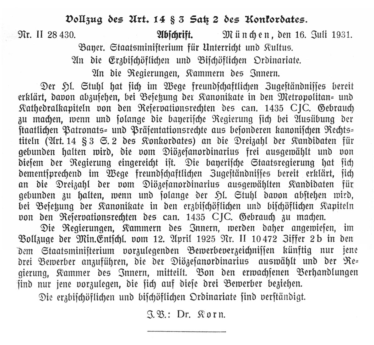 Neuregelung der Besetzung von Domkanonikaten, 16. Juli 1931. (Pastoralblatt des Bistums Eichstätt 78 [1931], 66-67)