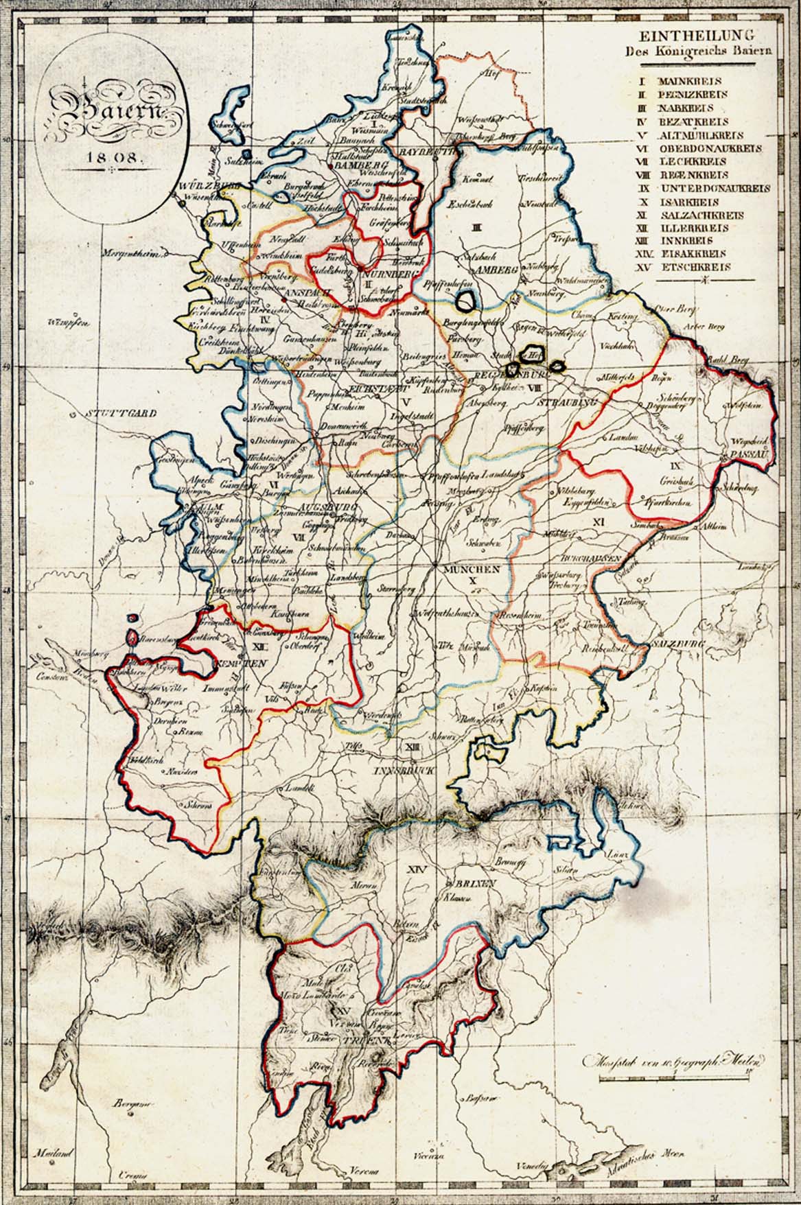 Die Kreiseinteilung des Königreichs Bayern 1808. (© Bayerisches Landesamt für Statistik und Datenverarbeitung, München, 2008)