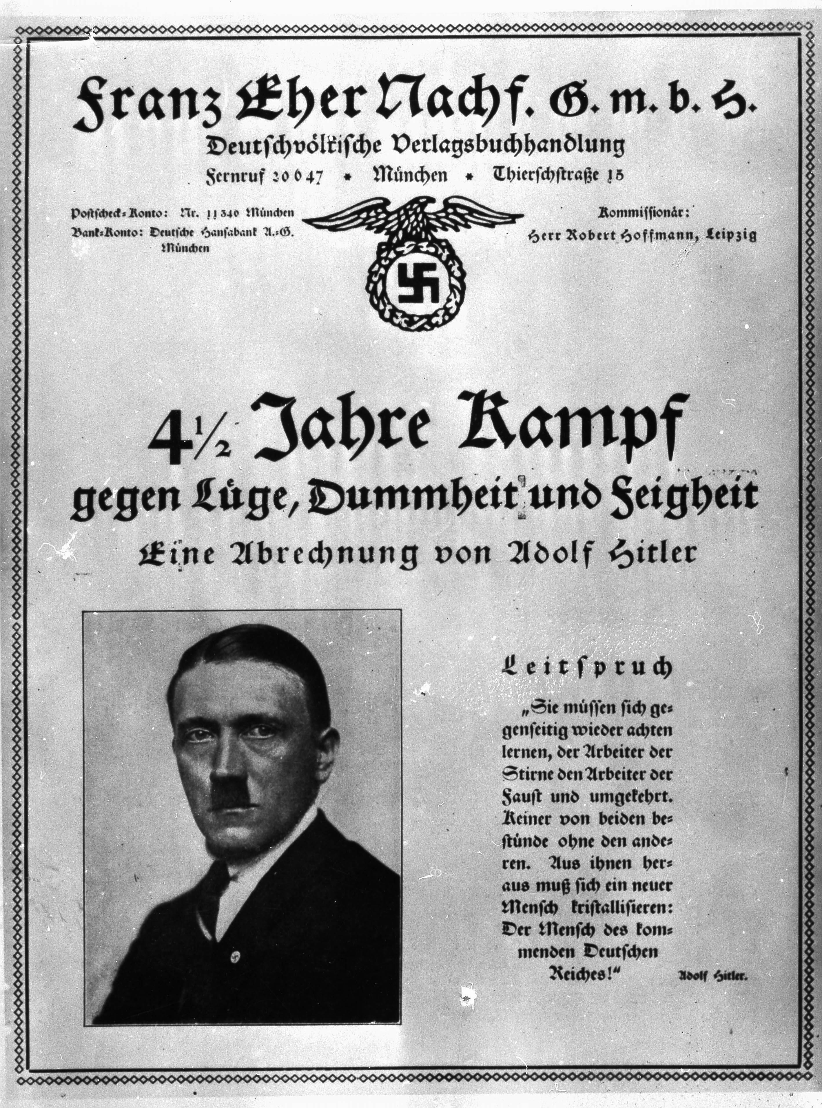 Werbeplakat für Adolf Hitlers "Mein Kampf", 1925. (Bayerische Staatsbibliothek, Bildarchiv hoff-6656)