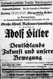 Plakat der NSDAP "Deutschlands Zukunft und unsere Bewegung", Ankündigung einer Versammlung in München zur Neugründung der Partei am 27. Februar 1925. (Bayerische Staatsbibliothek, Bildarchiv hoff-6498)