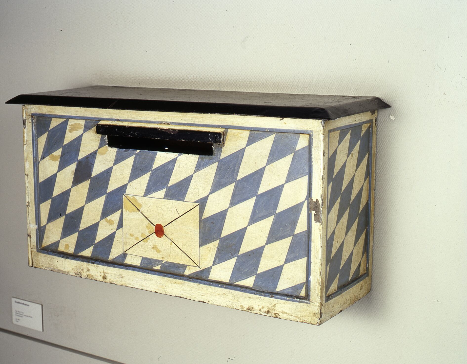 Stadtbriefkasten der königlich bayerischen Post. Älteste Bauart, ab 1845. Holz, Entleerung mittels Einsatzkasten. (Museumsstiftung Post und Telekommunikation)